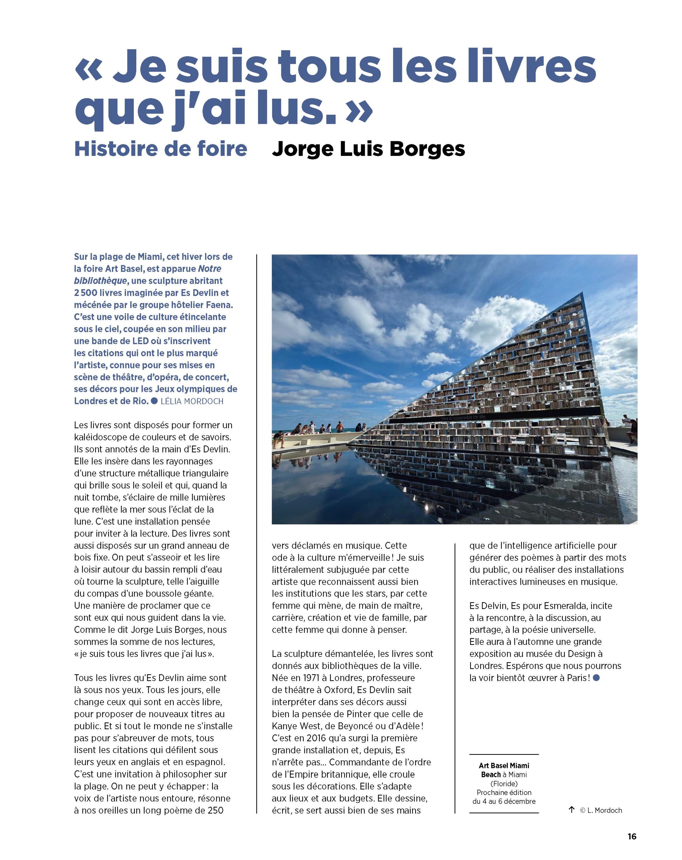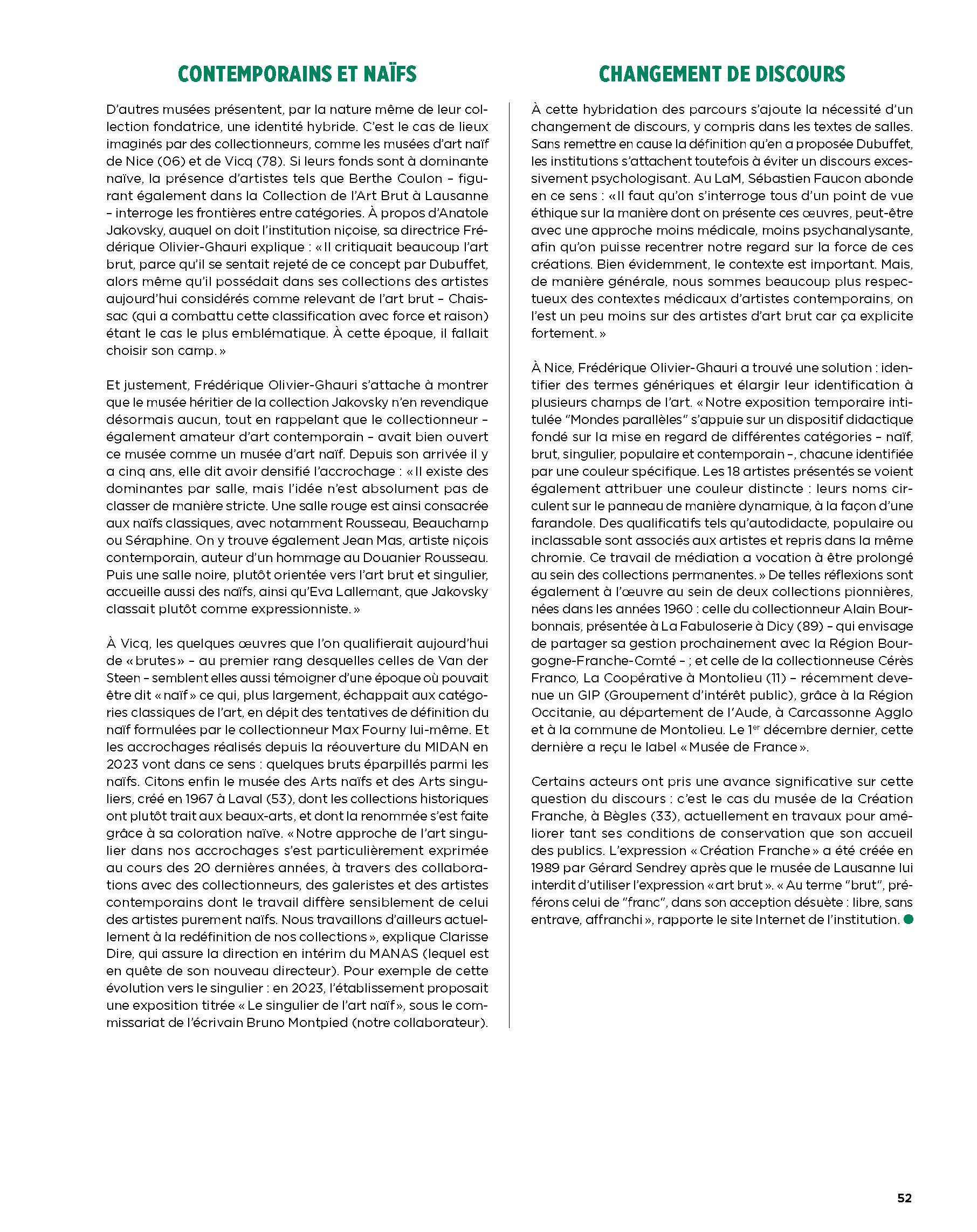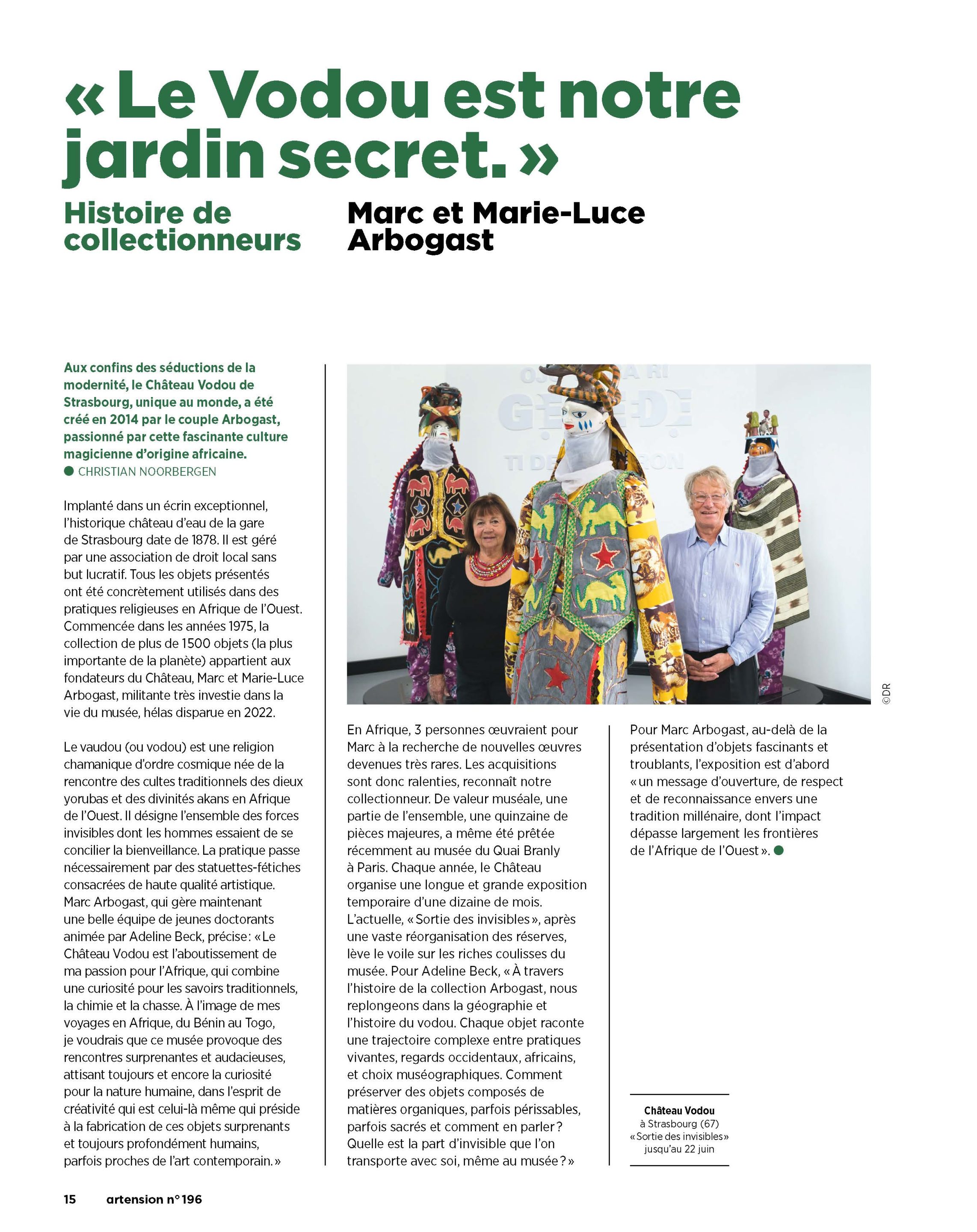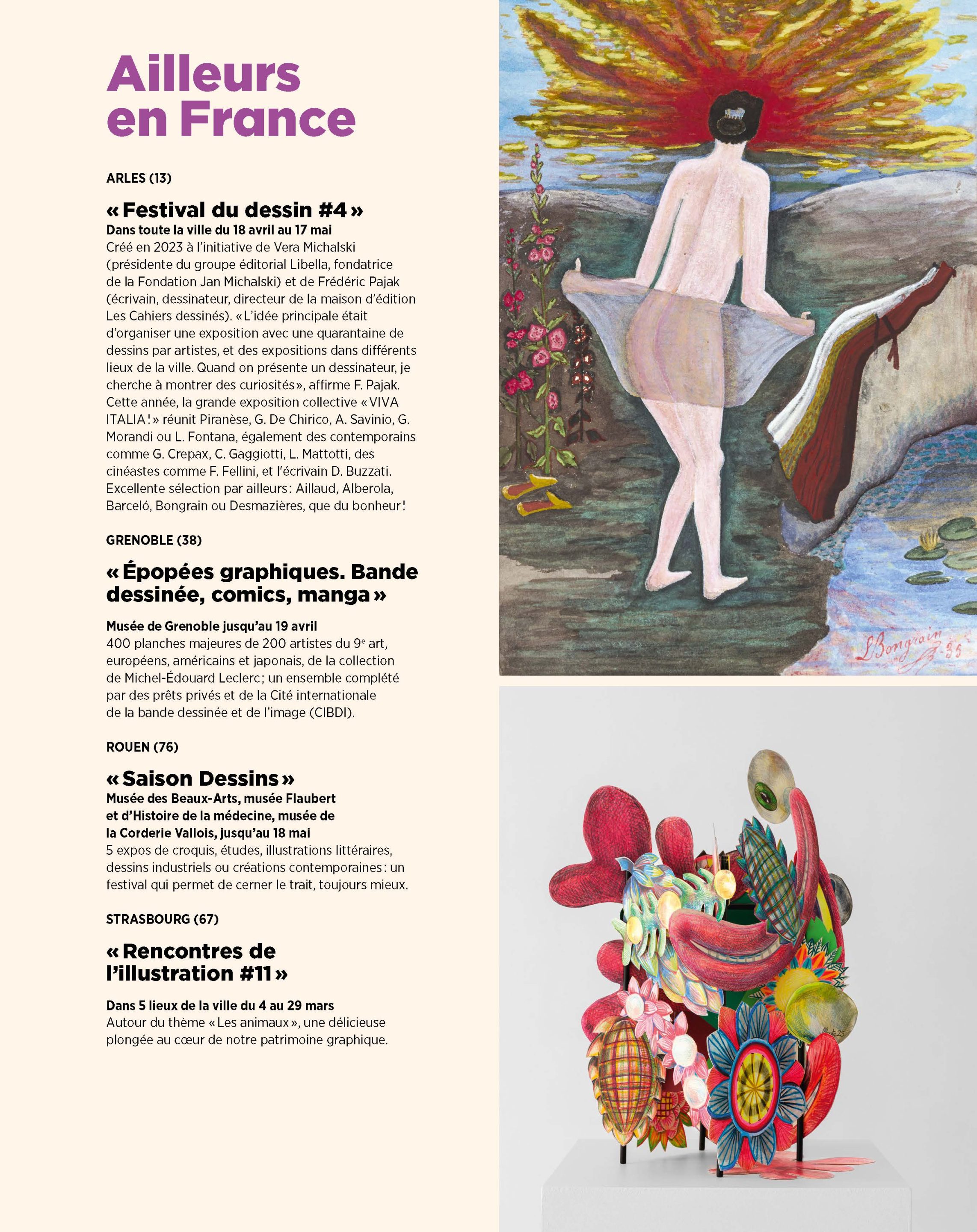 L’Espace Paul-Rebeyrolle, musée dédié au peintre expressif Paul Rebeyrolle (1926-2005) à Eymoutiers, risque de fermer en 2027 faute de financement suffisant. À Strasbourg, Marc et Marie-Luce Arbogast ont constitué depuis 1975 la plus importante collection vodou de la planète : 1 500 objets dans un château d’eau. À Miami, la scénographe Es Devlin a présenté à Art Basel une bibliothèque-sculpture de 2 500 livres.