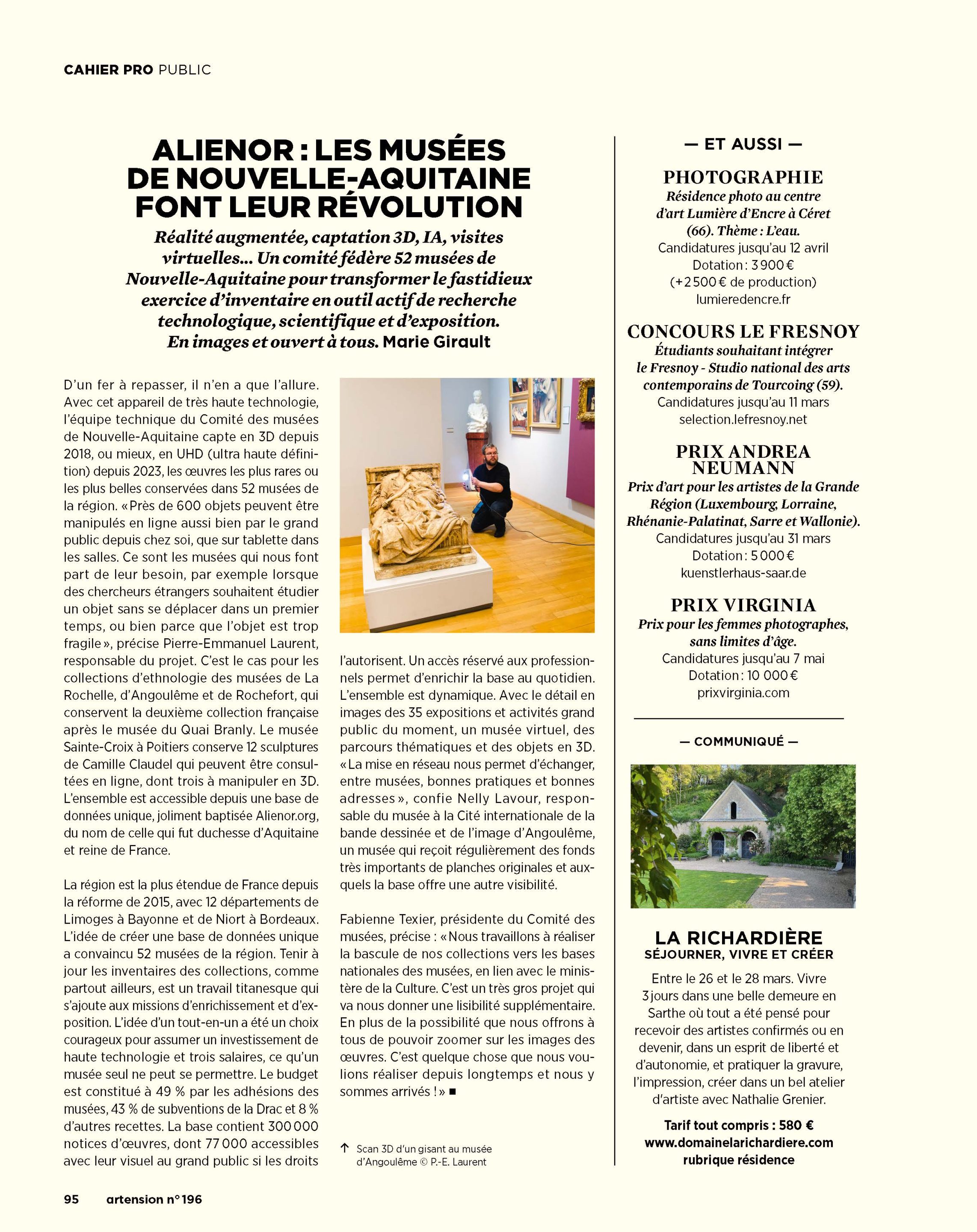 Dans son Cahier pro, Artension dresse le portrait d’un secteur qui innove malgré des budgets sous tension : des musées qui s’entraident à l’échelle des territoires, 52 institutions de Nouvelle-Aquitaine réunies sur une base de données numérique commune, et une résidence d’artistes face à la Méditerranée qui reprend ses sessions à l’automne.